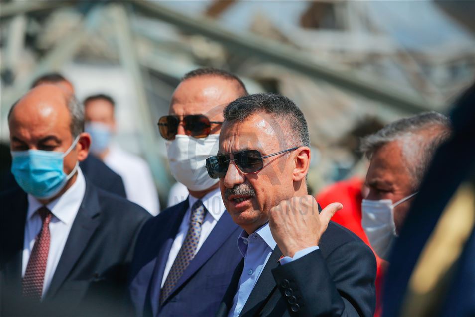 Turkish Vice President Fuat Oktay and Turkish Foreign Minister Mevlut Cavusoglu visit and receive current information on the search and rescue operation from Head of Turkeys Disaster and Emergency Management Authority (AFAD) Mehmet Gulluoglu and members of AFAD and Turkey's National Medical Rescue Team (UMKE) as operations continue after a fire at a warehouse with explosives at the Port of Beirut led to massive blasts on 4th August, in Beirut, Lebanon on August 08, 2020.