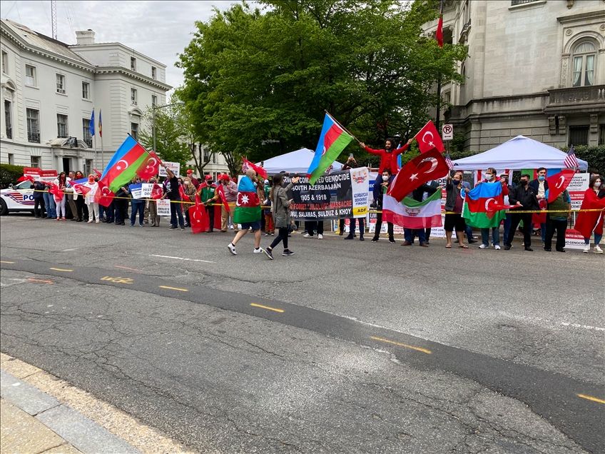 A group from the Turkish-US community here in Washington protested President Joe Biden's recognition of 1915 events as "genocide" on Saturday.