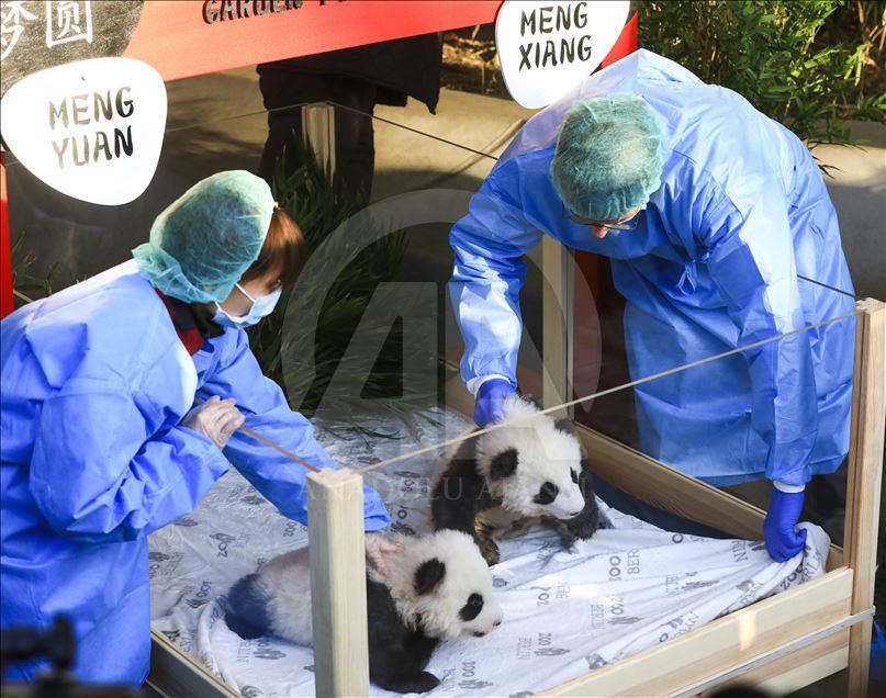 Baby pandas are seen at Zoologischer Garten in Berlin, Germany on December 9, 2019. Twin panda cubs "Meng Yuan" and "Meng Xiang", who were born at Zoologischer Garten, appeared for the first time in the press members.