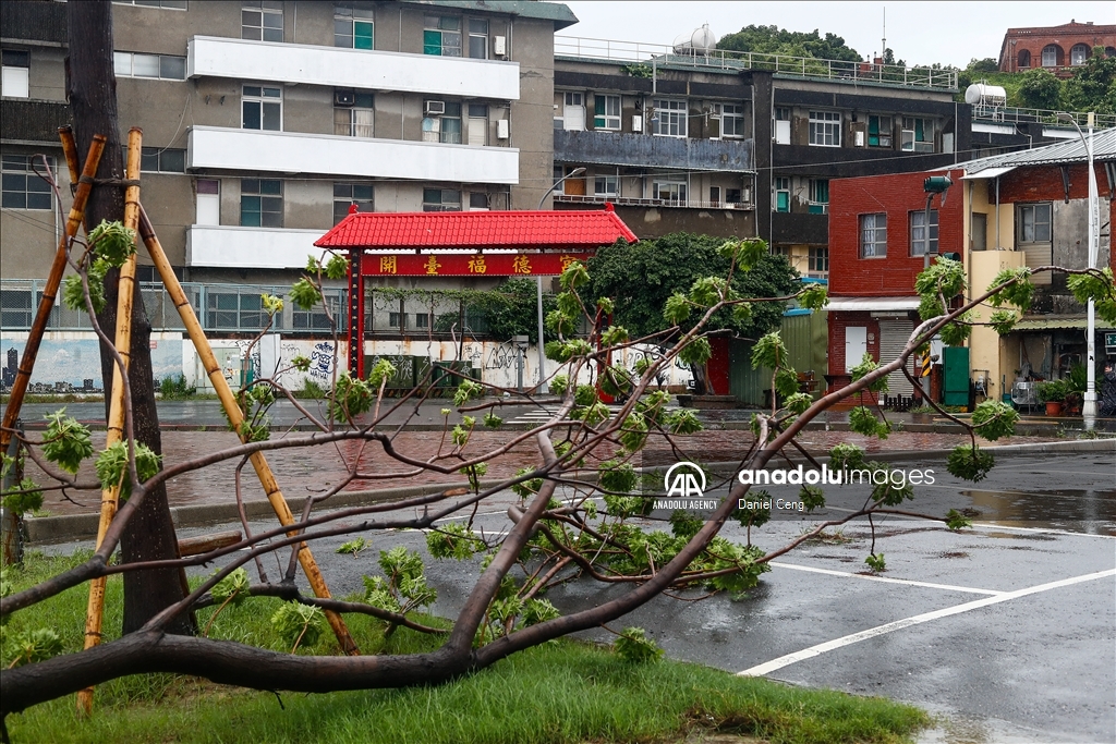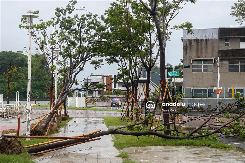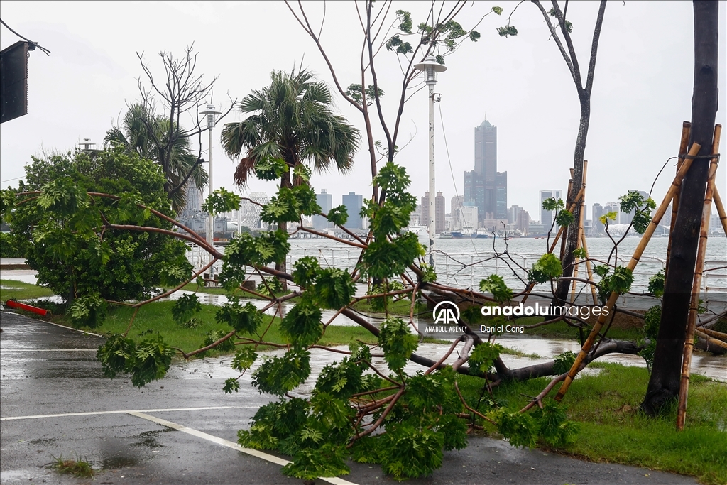 KAOHSIUNG, TAIWAN - OCTOBER 02: Several trees are blown down by strong winds, as Typhoon Krathon (Julien) brings rains and winds to the island, in the port city of Kaohsiung, Taiwan, on 2 October, 2024. All schools and work across Taiwan have been suspended as a precaution against possible catastrophic damages. All domestic and a number international flights including those bound for Japan, Hong Kong, Macau and Singapore scheduled for Wednesday have been canceled or rescheduled, as Typhoon Krathon is expected to make landfall on October 02 after hitting the Philippines. ( Daniel Ceng - Anadolu Agency )Daniel Ceng