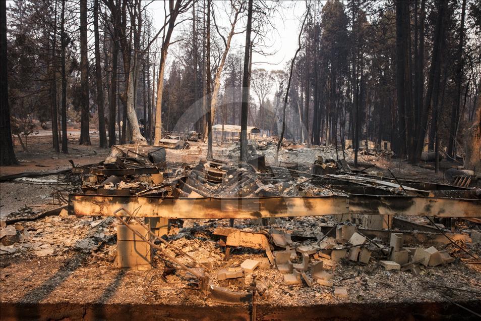 The Camp Fire in northern California was responsible for the five deaths, and destroyed most of the nearby town of Paradise, forcing some people to leave their cars and escape the fire's path on footEPA-EFE/EUGENE GARCIA