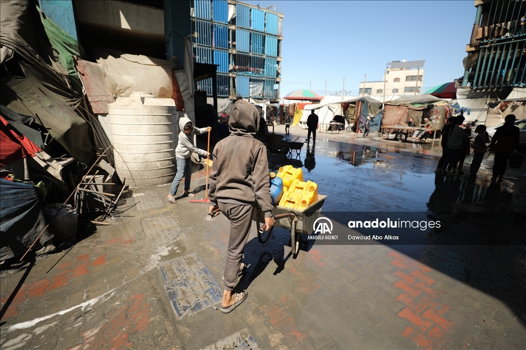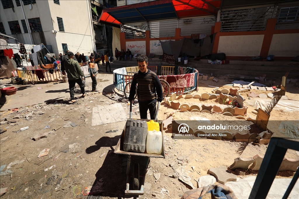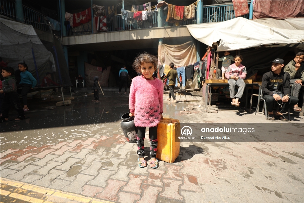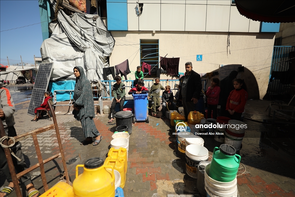 Palestinian children living in Gaza queue up to get clean water from a well that was activated using solar energy as they have limited access to water due to Israeli attacks and imposed blockade in Gaza City
