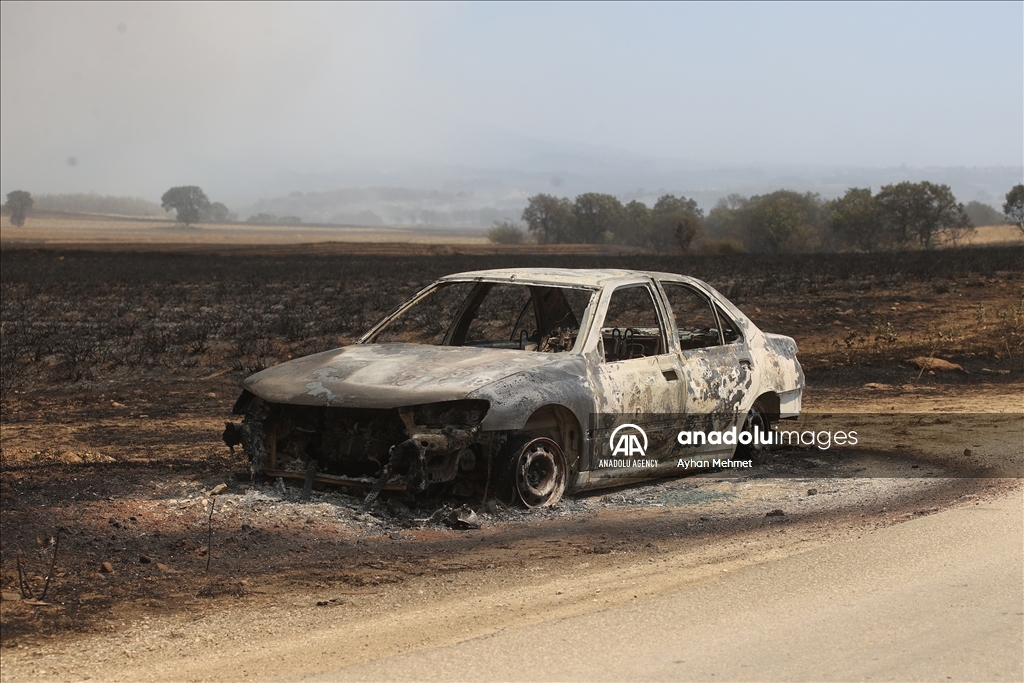 ALEXANDROUPOLIS, GREECE - AUGUST 21: Lots of vehicles and buildings have been damaged by the wildfires as the efforts to extinguish it continue with interventions by land and air on the third day in Alexandroupolis, Greece on August 21, 2023. ( Ayhan Mehmet - Anadolu Agency )Ayhan Mehmet