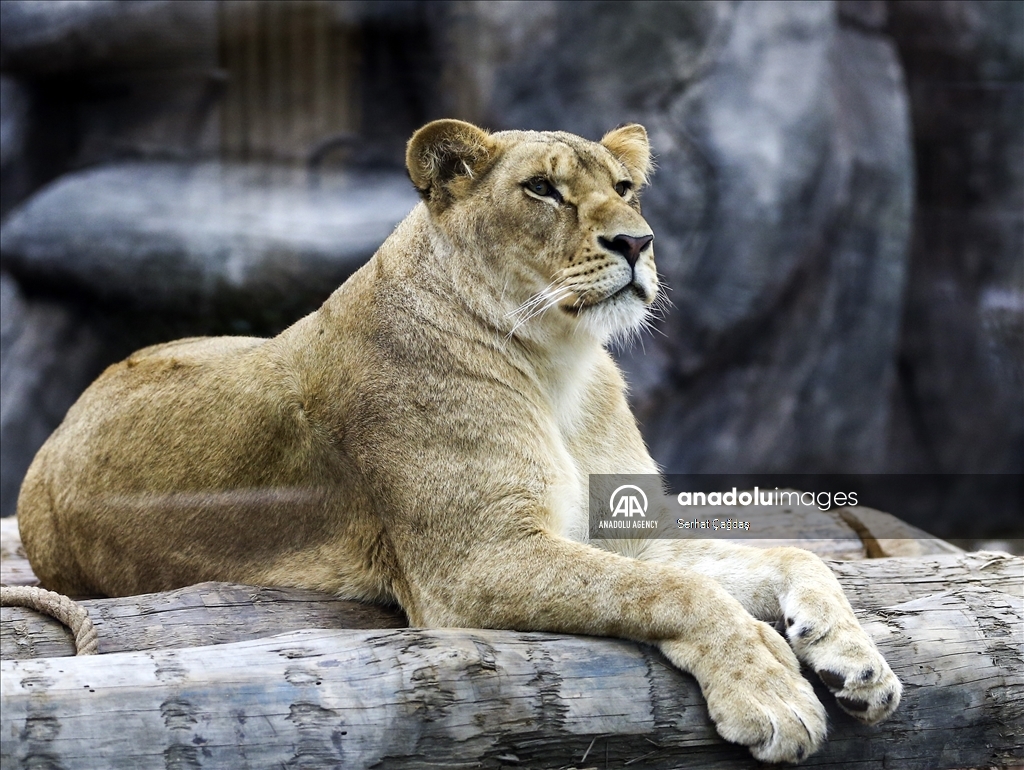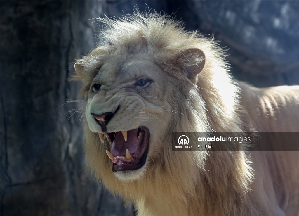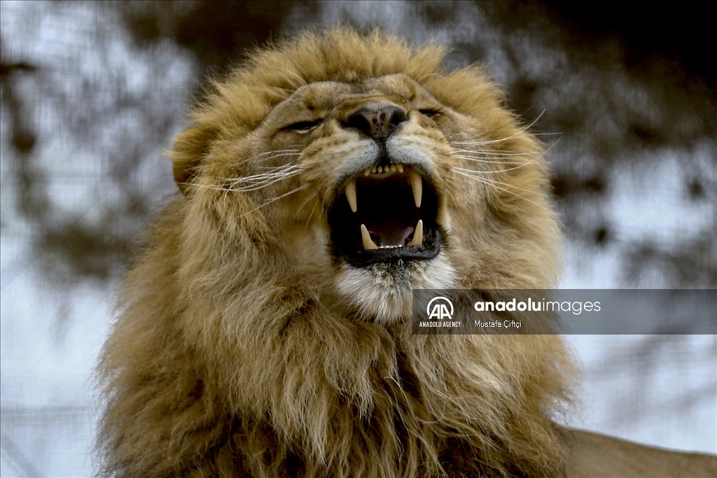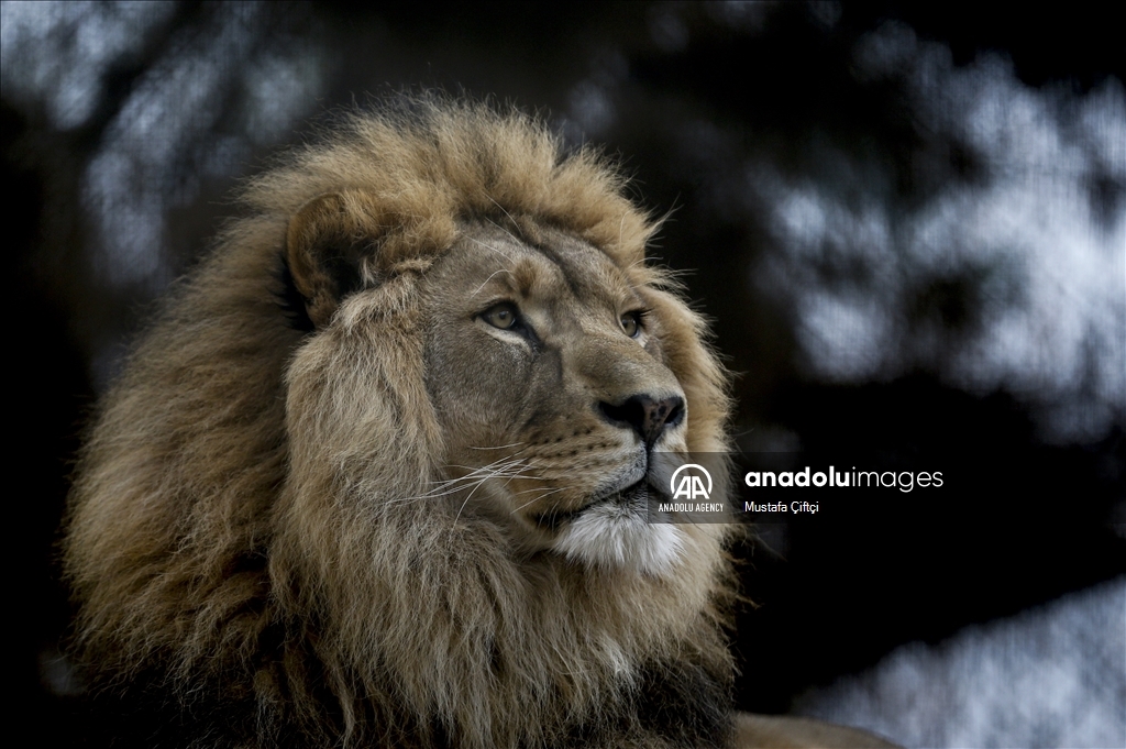 ANTALYA, TURKEY - FEBRUARY 03 : A lion looks on during feeding time at a zoo in Antalya, Turkey on February 03, 2020. The reactions of predators such as lions, puma, lynx, tigers, wolves and jackals in the zoo, established in Antalya on an area of 569 thousand square meters, attract attention. While the roaring sounds of the lions and howling of the wolves increase during the feeding hours, the cougar, lynx, tiger, wolf and weasel sticking their tongues before feeding. ( Mustafa Çiftçi - Anadolu Agency )Mustafa Çiftçi