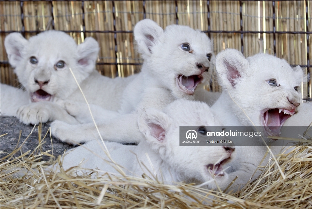 KIEV, UKRAINE - AUGUST 11: Four new-born white lion cubs, which were born in June 23, are seen at the 'XII months Zoo' in Demydiv region of Kiev, Ukraine on August 11, 2016. ( Vladimir Shtanko - Anadolu Agency )Vladimir Shtanko
