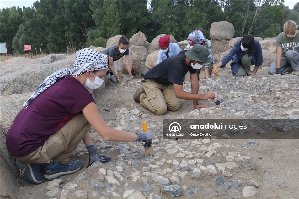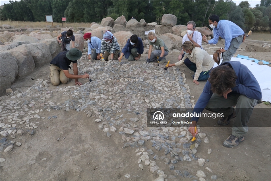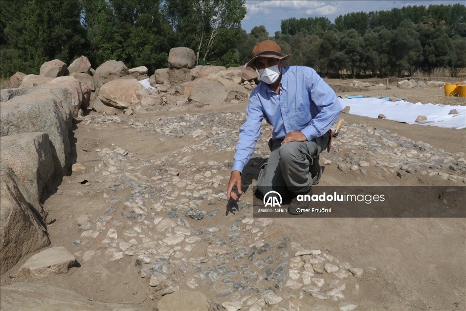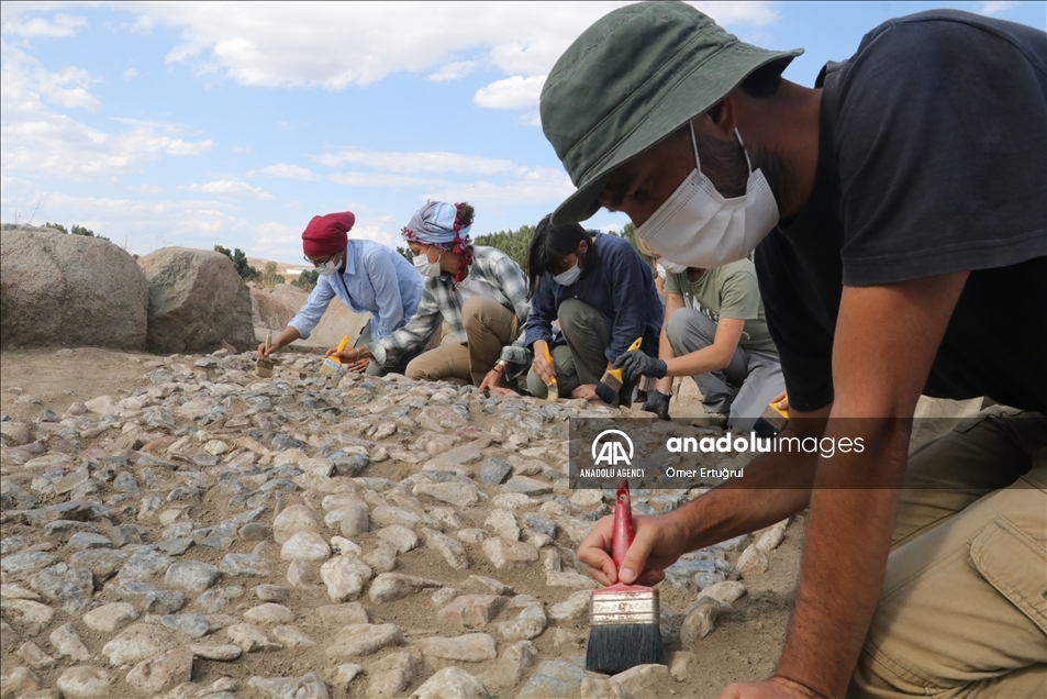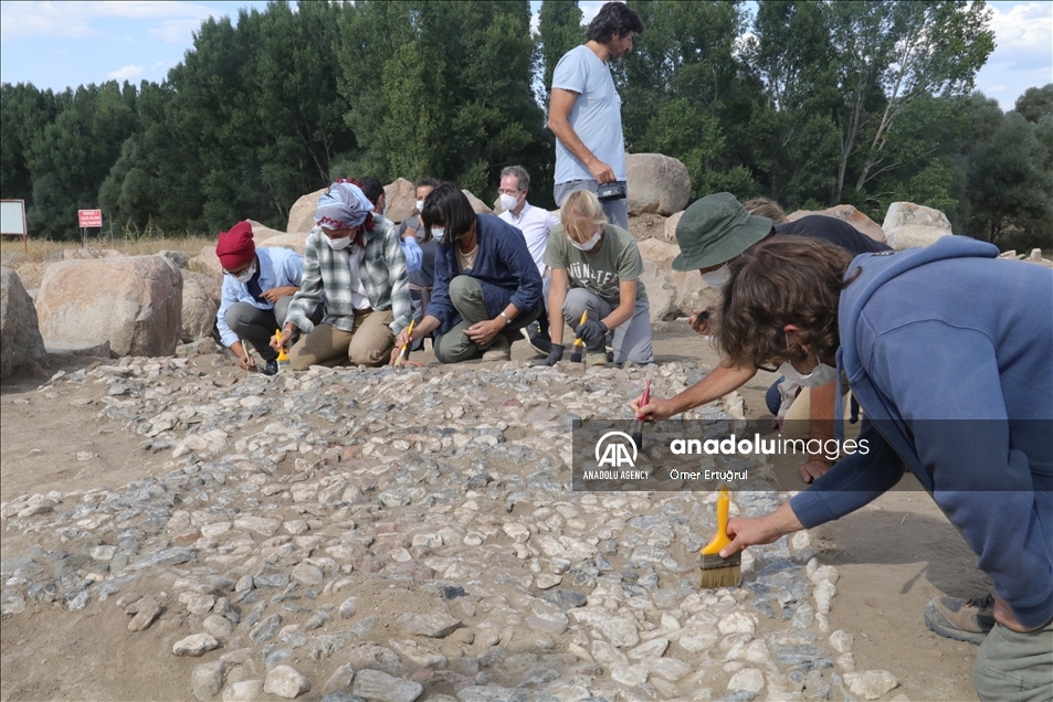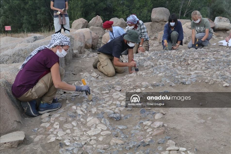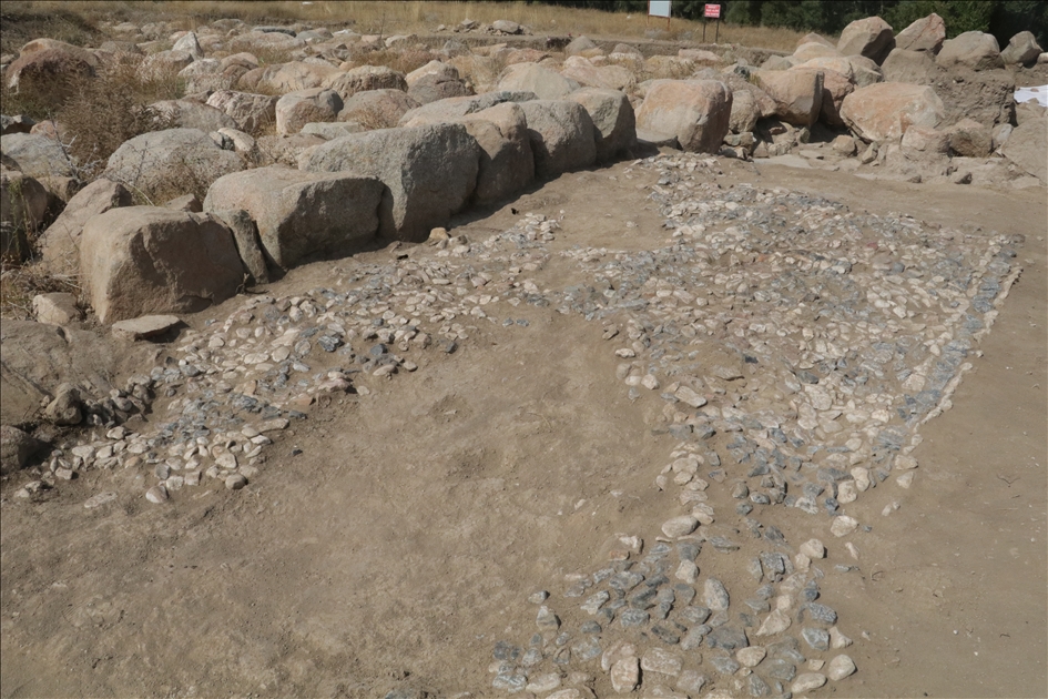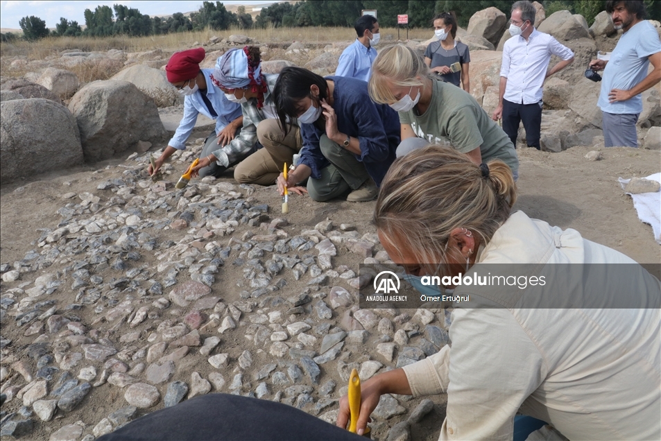 Yozgat'ın Sorgun ilçesine bağlı Büyük Taşlık köyündeki Uşaklı Höyük kazılarında 3x7 metre ebadında 3 bin 147 taştan oluşan 3 bin 500 yıllık mozaik ortaya çıkarıldı. ( Ömer Ertuğrul - Anadolu Ajansı )Ömer Ertuğrul
