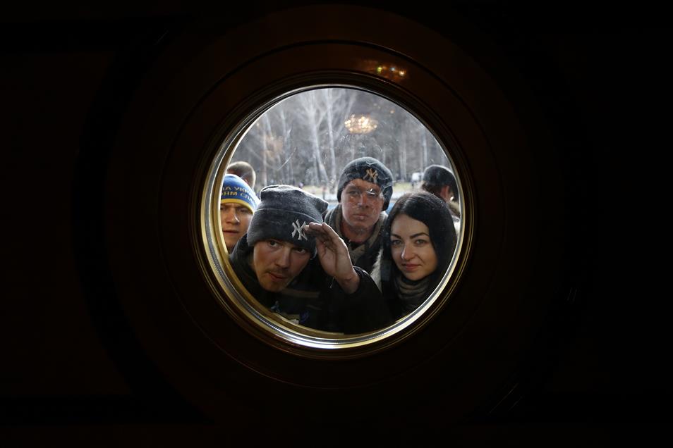 After Viktor Yanukovych's leaving the capital Kiev, the campus containing Yanukovych's residence put under protection by anti government protestors, charms the visitors. Houses of Yanukovych, a heliport, boxing ring, places for animals, gas station, a garage for more than 50 cars, a golf range, an artificial lake and waterfalls, many food courts, ships and the scenery of Dnieper River from Yanukovych's residence adorn the campus. People raiding to the campus, look at the former president's golden toilet and taps, valuables in luxurious yacht of Yanukovych.