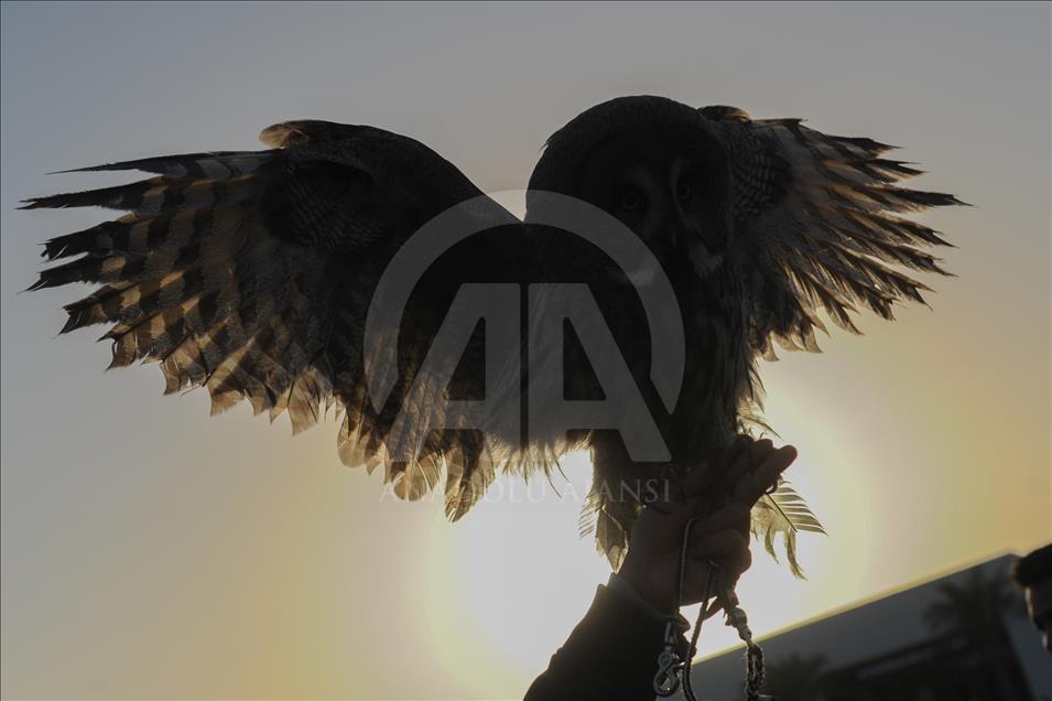 KUWAIT CITY, KUWAIT - FEBRUARY 18: An owl stands on the arm of its owner during an event at which species of owls are being displayed for enthusiasts in Sughan area of Kuwait City on February 18, 2017. ( Jaber Abdulkhaleg - Anadolu Agency )Jaber Abdulkhaleg