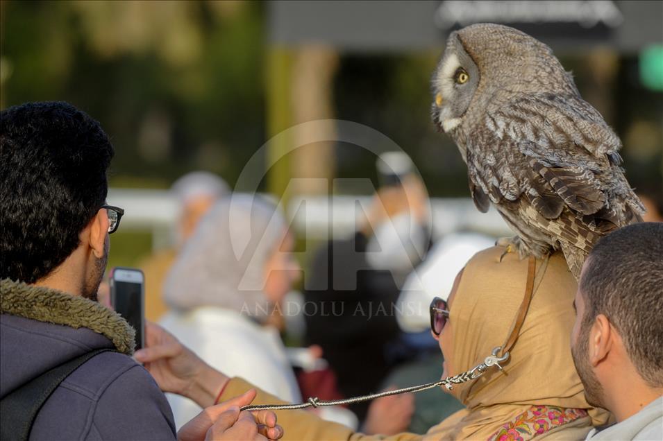 KUWAIT CITY, KUWAIT - FEBRUARY 18: An owl stands on a woman's head during an event at which species of owls are being displayed for enthusiasts in Sughan area of Kuwait City on February 18, 2017. ( Jaber Abdulkhaleg - Anadolu Agency )Jaber Abdulkhaleg