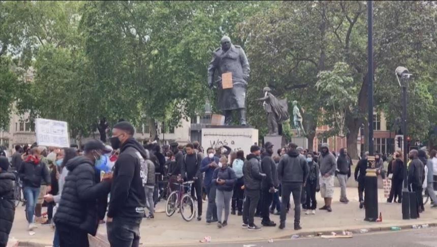 A memorial to former Prime Minister Winston Churchill in Westminster, central London, was also defaced.