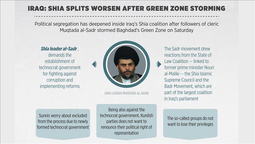 Political segregation has deepened inside Iraq’s Shia coalition after followers of cleric Muqtada al-Sadr stormed Baghdad’s Green Zone on Saturday, an analyst has told Anadolu Agency.