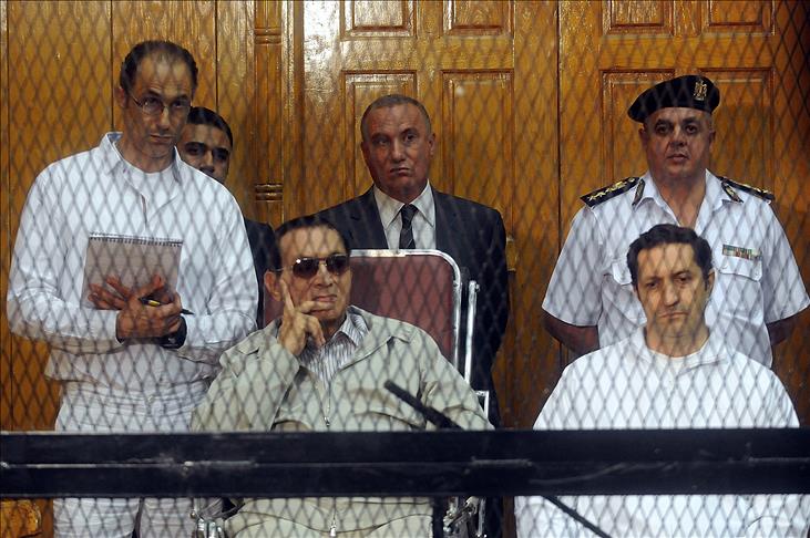 The ten defendants are being tried on charges of ordering the killing of demonstrators upon the January 25 revolution, which brought Mubarak's three-decades of rule to an end in 2011.