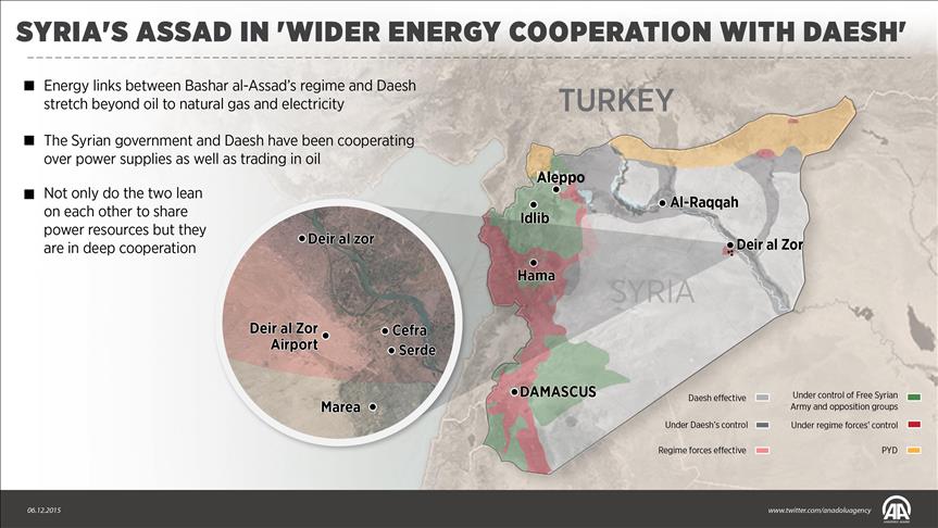 Energy links between Bashar al-Assad’s regime and Daesh stretch beyond oil, according to a Turkish security source that spoke to Anadolu Agency.