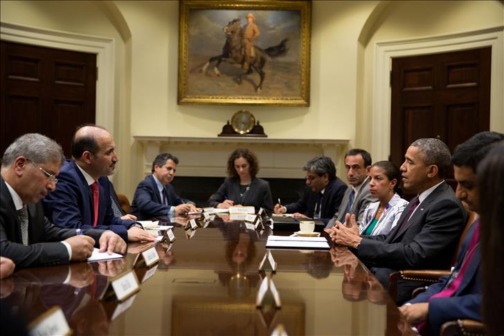 U.S. President Barack Obama and National Security Advisor Susan Rice met with Ahmad Jarba, the Syrian Opposition Coalition President, at the White House to reaffirm their support for Jarba and his allies Tuesday.