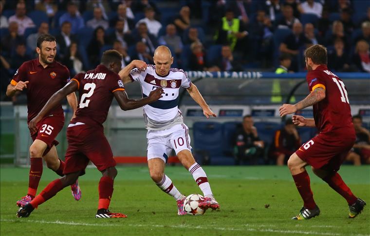 Four minutes later, Bayern's Polish striker Robert Lewandowski attempted to double the score, but Roma's Morgan De Sanctis saved the ball.