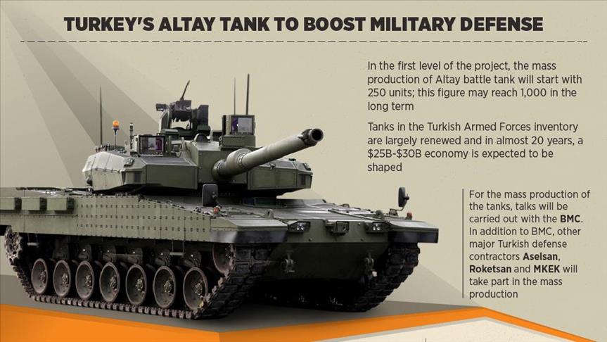 Altay is due to join such recent Turkish defense industry innovations as the ANKA unmanned aerial system developed by Turkish Aerospace Industries for the Turkish military, the Hurkus basic trainer aircraft, and the MILGEM corvette ships.