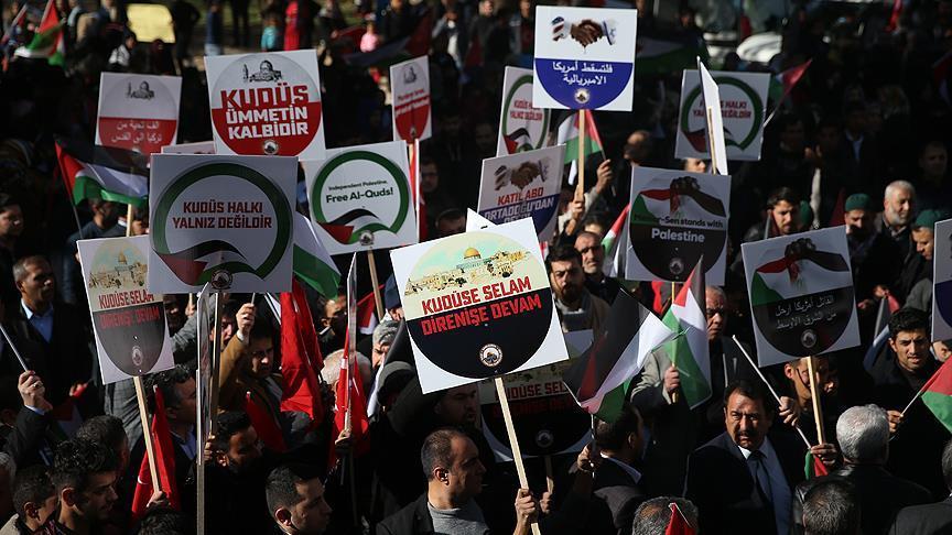 The crowds who gathered outside the central Sabanci Mosque in southern Adana province chanted: "Al-Quds [Jerusalem] will never be the capital of Israel."