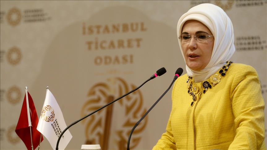 In remarks made during her speech at the closing ceremony of “Mobil Solutions Address: Women” project in Istanbul, Emine Erdogan said: “Elimination of barriers such as wage differential, glass ceiling obstacles [invisible but real barriers to advancement in a profession, typically applied to women] are requirements for equity.”