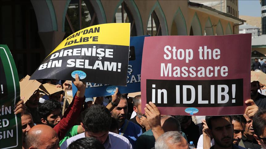 Scores of people gathered in Istanbul to protest a possible attack by Assad regime and its allies in Syria's northwestern province of Idlib.