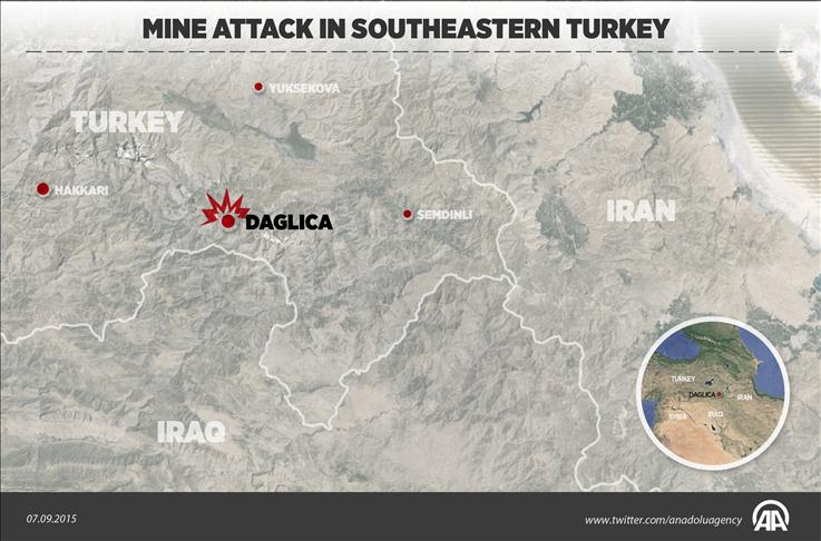 In the deadliest attack on security forces since the PKK violence surged at the end of July, terrorists targeted two armored vehicles with roadside bombs between Daglica and Yuksekova in the southeastern province of Hakkari, which borders Iraq and Iran.