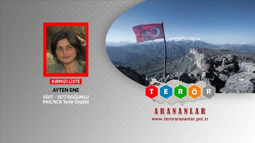The Interior Ministry later announced that among the terrorists was Ayten Ene -- codenamed Cicek Kurtalan -- who was on the red category -- naming most wanted terrorists -- of its list.