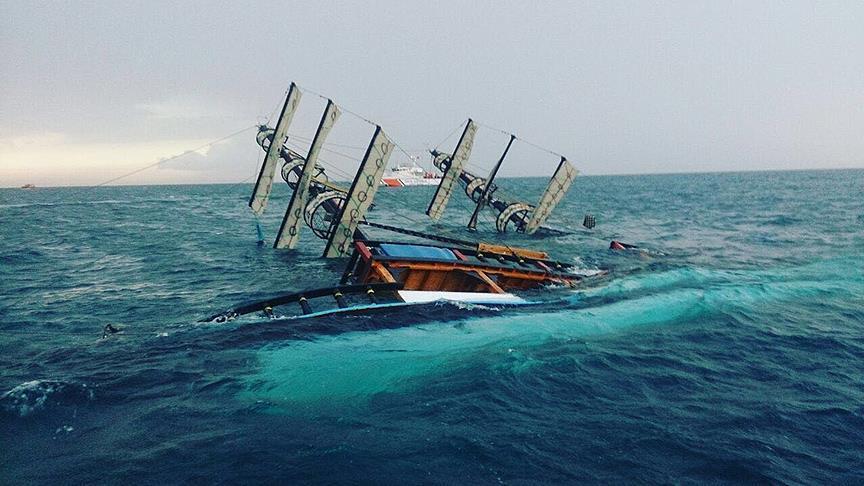 After the boat capsized in a heavy rainstorm, Turkish Coast Guard and marine police teams were deployed to the scene for search and rescue operations.
