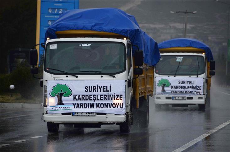 Trucks of the first aid convoy sent by the IHH Humanitarian Relief Foundation for Syrian civilians started to reach border gates on Saturday.