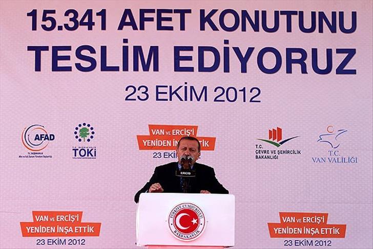 Speaking at the turn-key ceremony of residences built by Housing Administration of Turkey (TOKI) for the victims of magnitude-7.2 earthquake in the Ercis town of eastern city of Van, Erdogan stressed that "after an immediate interference we started a mobilization. In the past year, we always thought about the city of Van."
