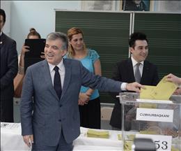 Presidential candidate and Prime Minister Recep Tayyip Erdogan has cast his vote in Turkey's presidential election.