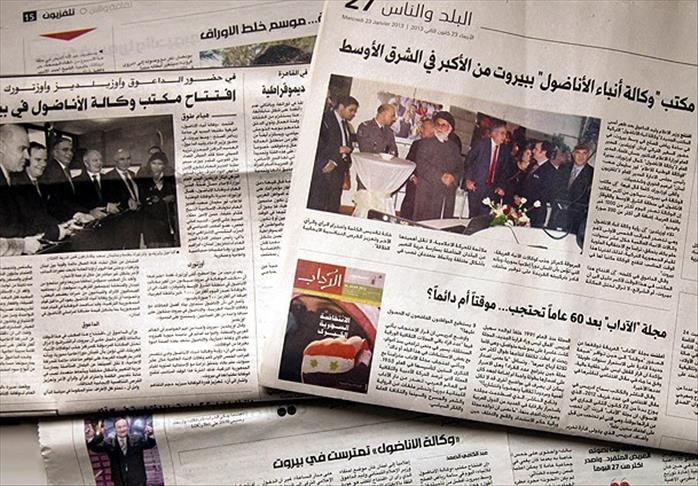 Lebanon's Al-Akhbar newspaper headlined "Turks entering Lebanon in the field of press is an event to be celebrated" over the inauguration of Anadolu Agency's Beirut office.