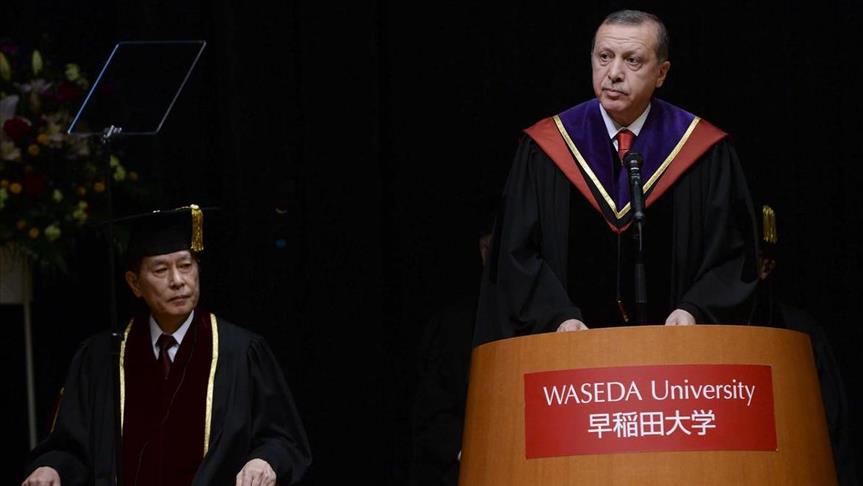 "The Japanese government and the people of Kushimoto helped the injured sailors, making the saga became a milestone in historic friendly relations between Turkey and Japan," Erdogan said in a Thursday speech at Waseda University in the country's capital Tokyo - where he was also given an honorary doctoral degree.