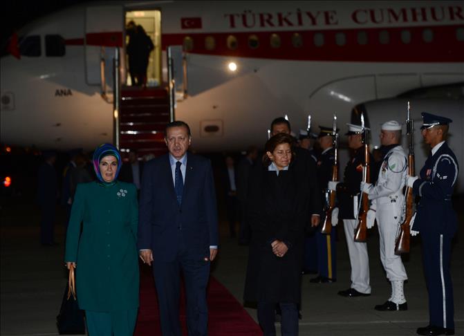 At his arrival in Washington Joint Base Andrews Naval air facility, Prime Minister Erdogan was welcomed with full military ceremony. Erdogan's spouse Emine Erdogan and Turkish Foreign Minister Ahmet Davutoglu also arrived in Washington.