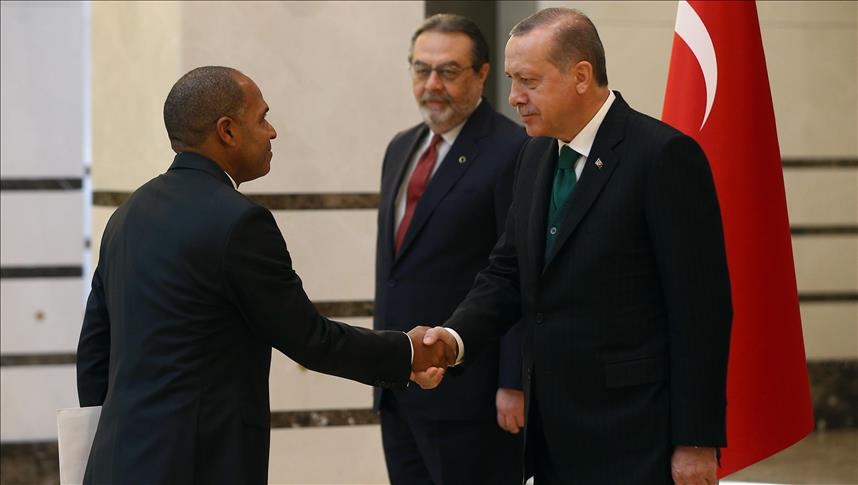 Turkish President Recep Tayyip Erdogan welcomed the newly appointed Cuban and Tunisian ambassadors in Ankara at the presidential complex on Tuesday.