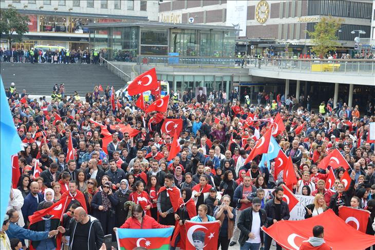 The protest, organized by Sweden Eurasia Association in Stockholm’s Segeltorp Square, was attended by Turks from Balkan states, Azeri citizens, Uighurs, and Iraqi Turkmen, among others.