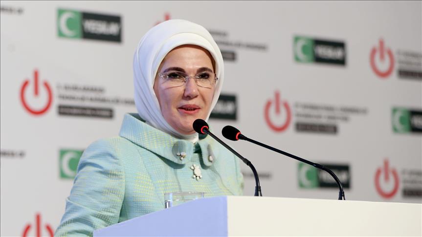 Turkey’s First Lady Emine Erdogan addressed a crowd at the third International Congress of Technology Addiction organized by Turkish Green Crescent Society (Yesilay), an anti-addiction body in Turkey.