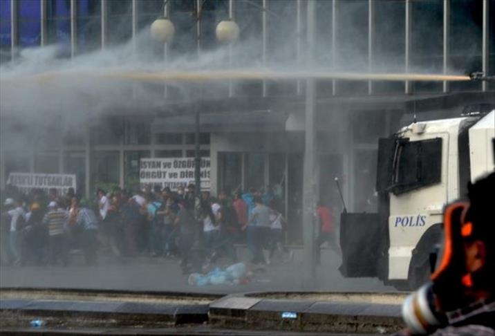 Demonstrators who gathered in Kızılay district, central Ankara to protest the demolition of Taksim Gezi Park which is one of the few green sites in central Istanbul, dispersed into side streets due to police intervention and rain.