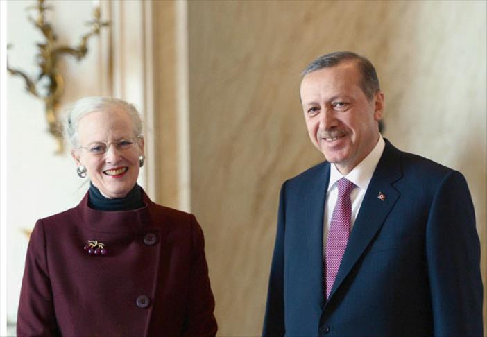 Queen Margrethe II of Denmark received Turkish Prime Minister Recep Tayyip Erdogan who is currently in Denmark on an official visit at Amalienborg Palace on Wednesday.