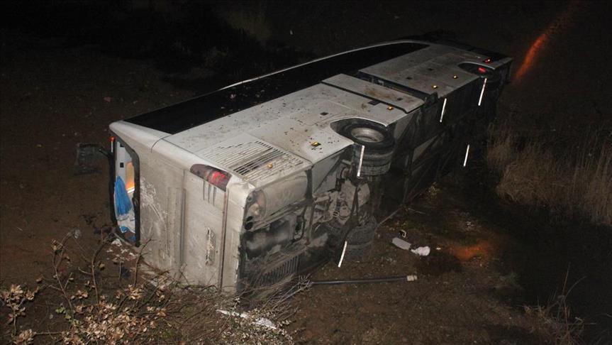 The accident happened on the Ezine–Bayramic road in Canakkale province, with the coach falling off Harharik Bridge following the crash, the sources said.