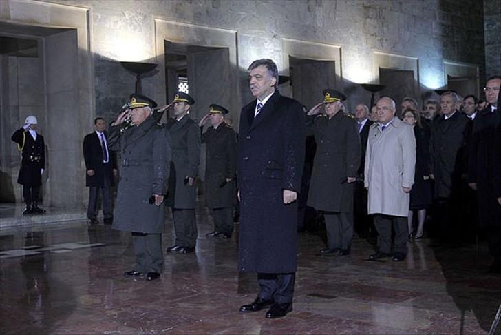 Turkish President Abdullah Gul, Parliament Speaker Cemil Cicek, Chief of General Staff Gen. Necdet Ozel and the main opposition Republican People's Party (CHP) chairman Kemal Kilicdaroglu as well as the state dignitaries laid a wreath at Ataturk's Mausoleum--Anitkabir.