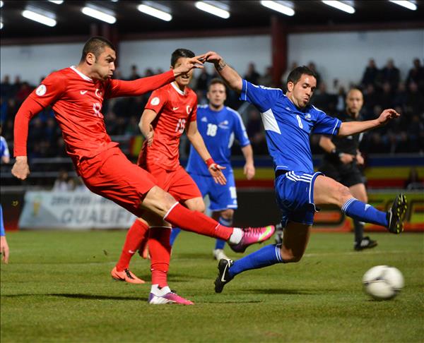 Turkish national soccer team defeated Andorra 2-0 in Andorra in their fifth game in Group D in the 2014 FIFA World Cup European Qualifiers.