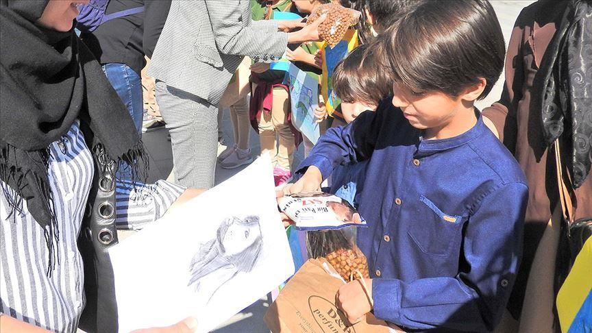 In Turkey’s central Konya province, a group of elementary school students bartered their paintings Friday to feed stray animals.