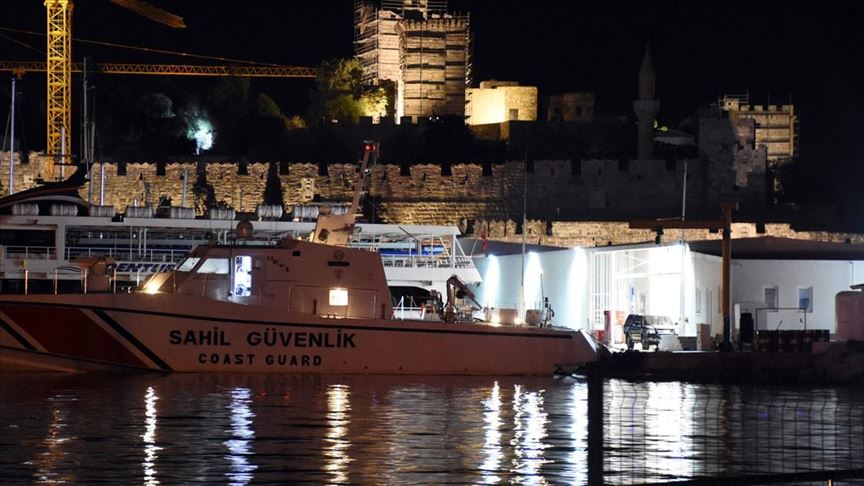 The local coastguard said a rubber boat carrying 15 irregular migrants, including two infants, as well as an alleged human smuggler sank off the coast of southwestern Mugla province.