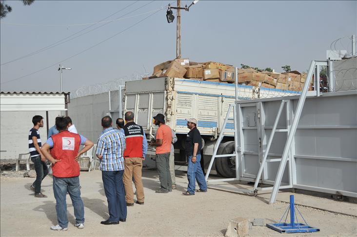 Turkey has sent nearly 2,000 vehicles with humanitarian aid to people in the northern Syrian town of Kobani since September 19, 2014.