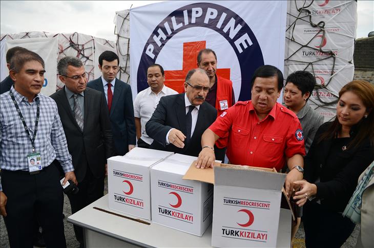 Turkey's state-owned relief organization Turk Kizilayi (Red Crescent) has sent 65 tons of aid-- including food, kitchen equipments, blankets and tents-- to the disaster-hit Philippines on Monday.