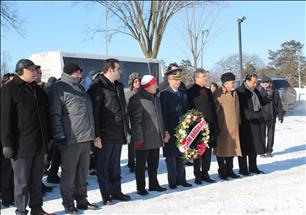 The Turkish parliament head also laid a wreath on the Ataturk Memorial in Astana and he met with a group of students from the Yunus Emre Culture Center.