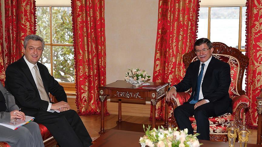 Turkish Prime Minister Ahmet Davutoglu discussed the refugee crisis with UN High Commissioner for Refugees Filippo Grandi during a meeting at the premier’s Dolmabahce office in Istanbul Saturday.