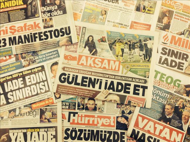 Turkish Prime Minister Erdogan's demand for the extradition of the leader of Gulen Movement from the United States was also covered heavily on Wednesday.