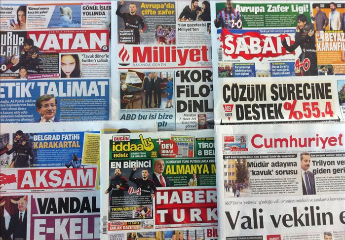 AKSAM ran the headline: "The West interested in oil, not people," while VATAN wrote: "Terrorists are fighting each other in Kobani." Erdogan’s comments came during his official visit to Latvia on Thursday.
