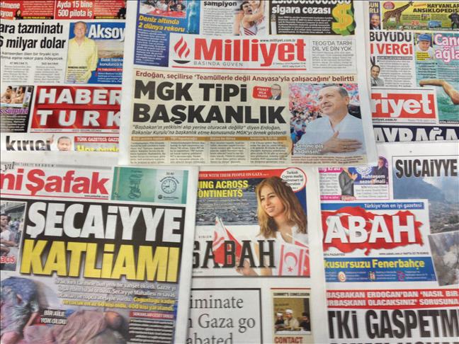 Turkish dailies on Monday focused on Israel’s military operation in Gaza plus Turkish Prime Minister Recep Tayyip Erdogan’s remarks on the upcoming presidential election.