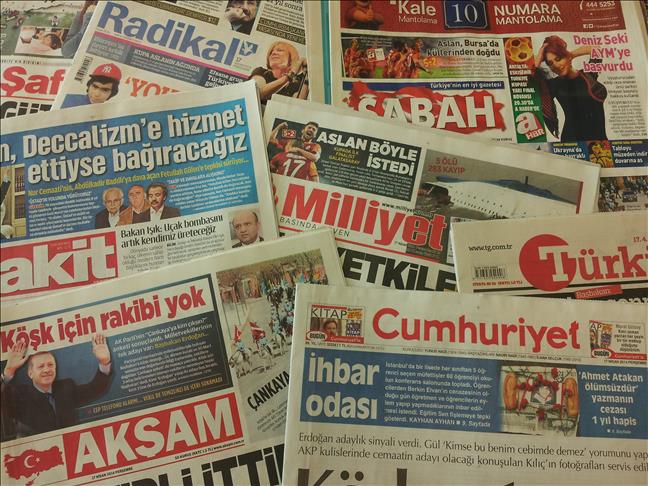 Most Turkish dailies dedicated their front pages to the country’s upcoming presidential election. Comments from current president, Abdullah Gul, about his possible nomination plus the ruling AK Party’s meeting on who should be its nominee took center stage in many dailies.